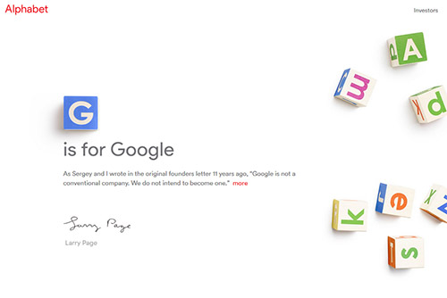 Основатели Google Ларри Пейдж и Сергей Брин объявили о создании новой холдинговой компании Alphabet, которая будет включать в себя поисковую систему и ряд других подразделений. Интернет-адрес новой компании - abc.xyz.